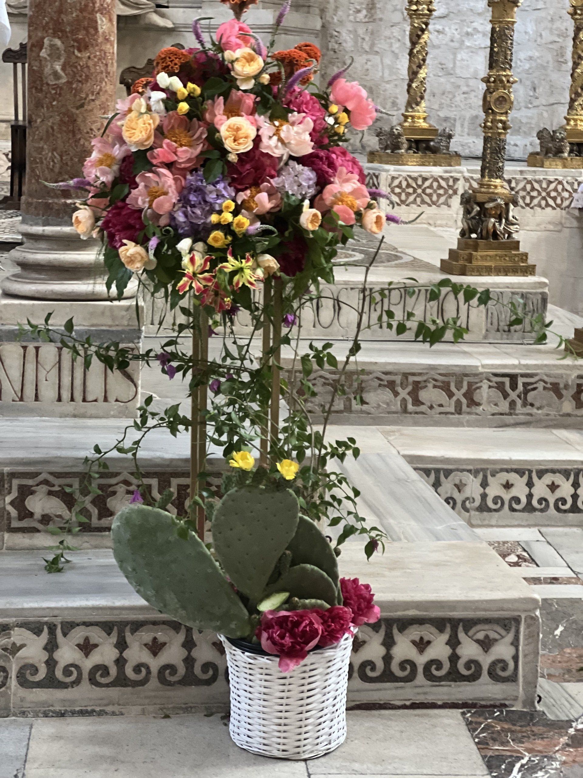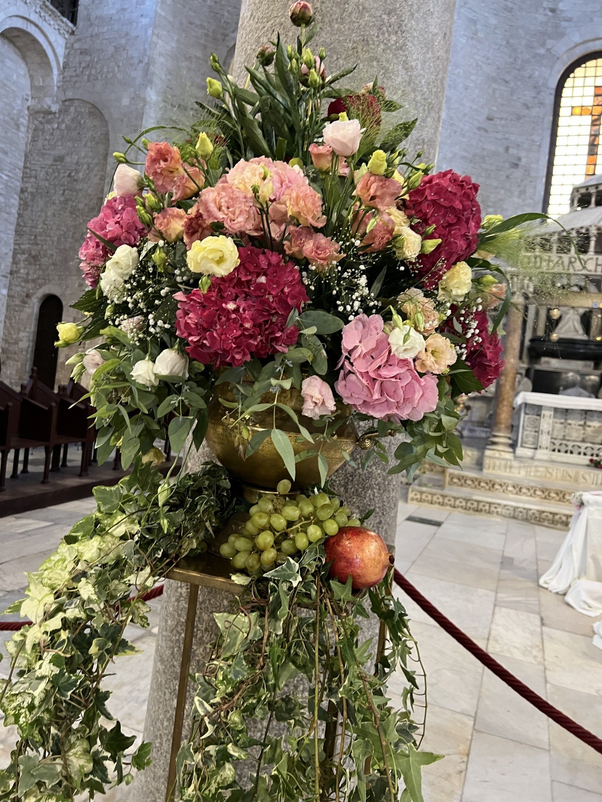 Saverio Veronico Floral Design di Bari è un punto di riferimento sul territorio negli allestimenti floreali per chiese: battesimi, cresime, comunioni, anniversari, funerali. Contatta il punto vendita per informazioni e preventivi.