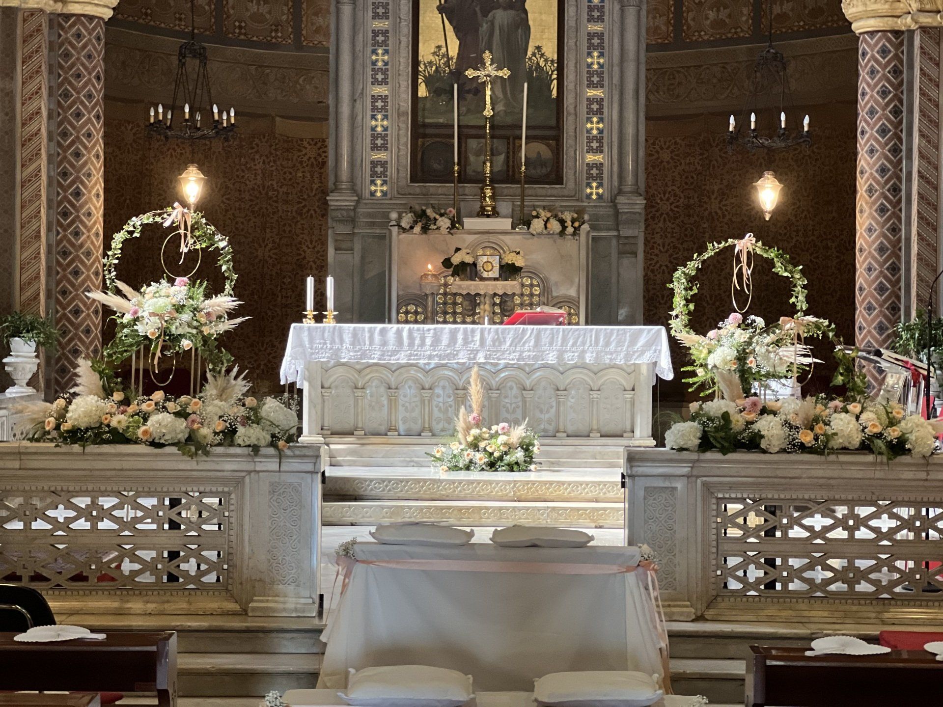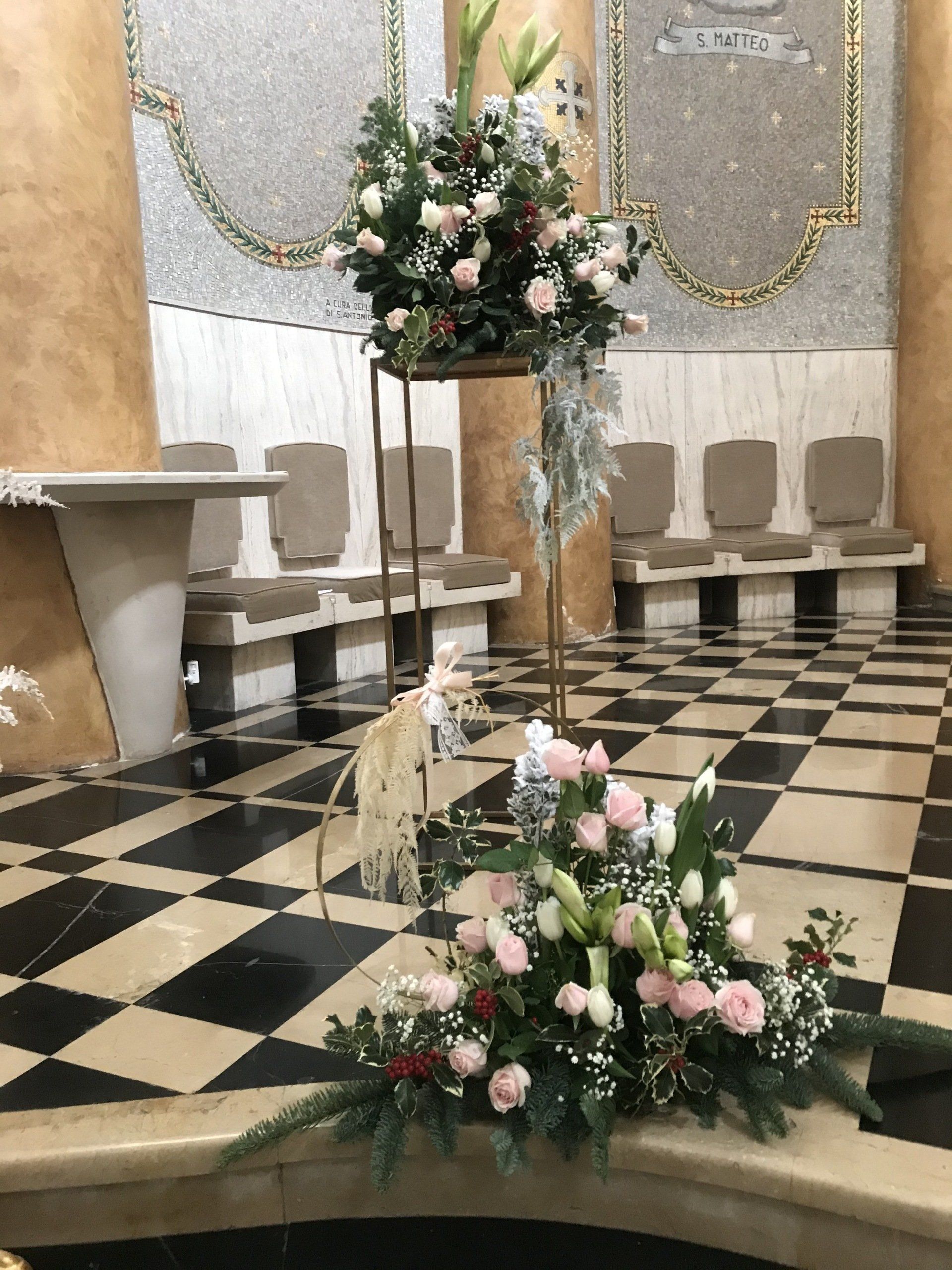 Gli allestimenti floreali per chiese sono la fase più importante e delicata che un fiorista è chiamato a compiere. Bisogna infatti essere in grado di individuare la soluzione che meglio si adatta allo stile architettonico del luogo sacro, tenendo anche conto della particolare illuminazione dell’ambiente.