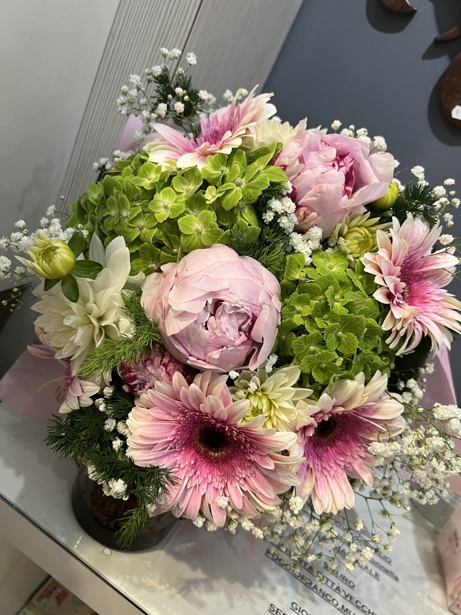 - bouquet rotondo e compatto: con piccoli fiori, leggero e delicato, è quello che meglio si adatta a qualsiasi tipo di statura e figura, abbinandosi alla perfezione ad un tipo di abito informale;